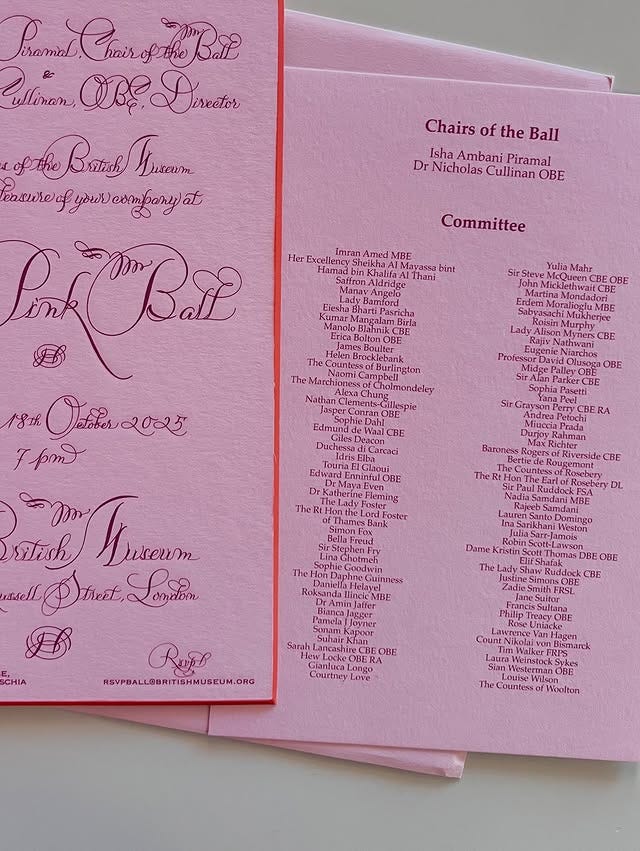 Are you ready to don your best sari and put on your finest jewellery for the British Museum Pink Ball tomorrow evening? What? You didn’t get the invitation? Neither did I, which I don’t understand as I could have then given them a bit of free PR by writing about it here. I guess I’m not that kind of media mogul yet. In case you didn’t know about it, the Pink Ball will bring Jaipur splendor to London as its theme has been inspired by the British Museum latest exhibition Ancient India: Living Traditions. Some have already named it London’s take on the Met Gala with tickets going at £2,000 a piece. So far, the exclusive dinner has raised £1.6 million which will go on to support the museum’s international collaborations, including the loan of the Bayeux Tapestry. However, not everyone is thrilled about what is essentially a feast for the rich -no matter how noble their fundraising goals- and climate activists have taken the opportunity to flag the museum’s longstanding partnership with oil giant BP.